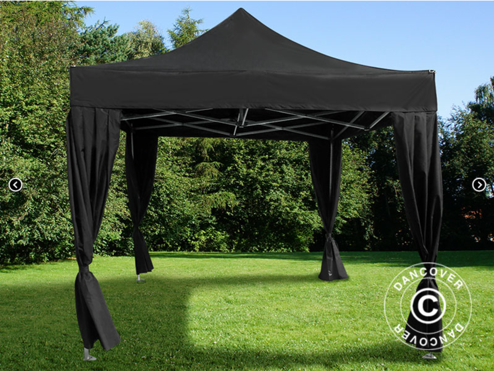Ställning, 1 taköverdrag, 4 dekorativa gardiner, jordspikar 25 cm