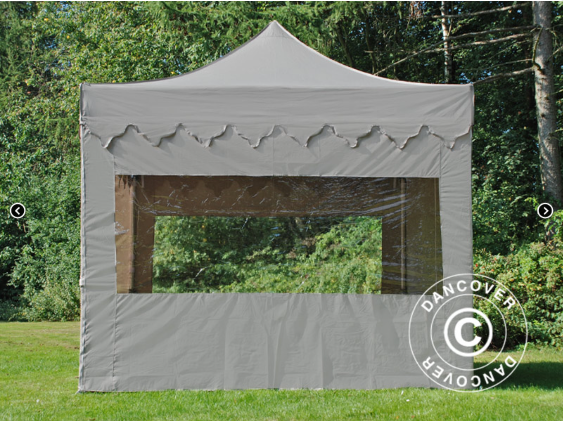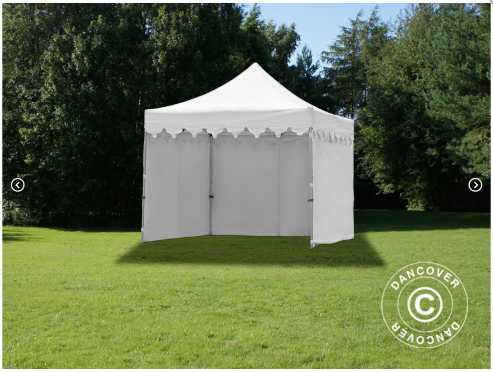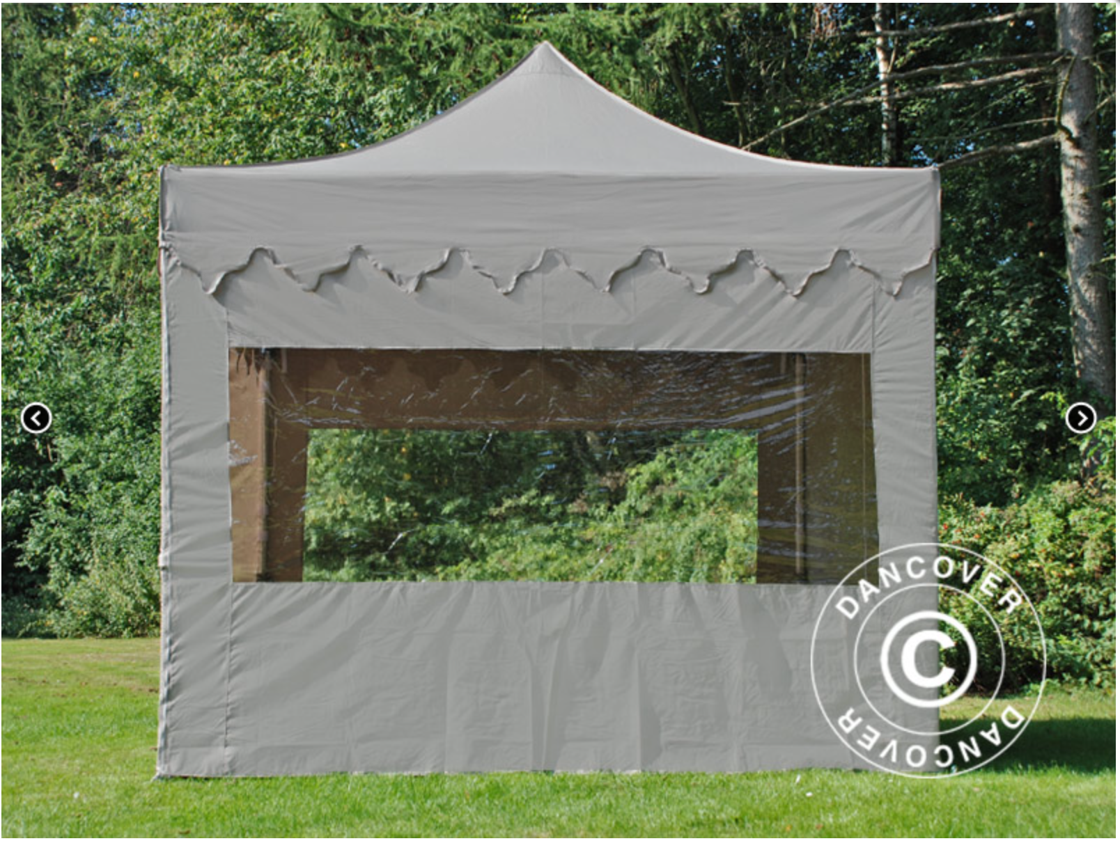 Vi rekommenderar dig att köpa en bottenram, viktdiskar och vårt säkerhetspaket som innehåller stormlinor och tältpinnar anpassade till storm för att öka stabiliteten vid blåsigt väder. Välj sidoväggar i olika färger, halva sidopaneler eller sidoväggar med panoramafönster för att anpassa ditt FleXtents ännu mer och skapa olika intressanta utseende.