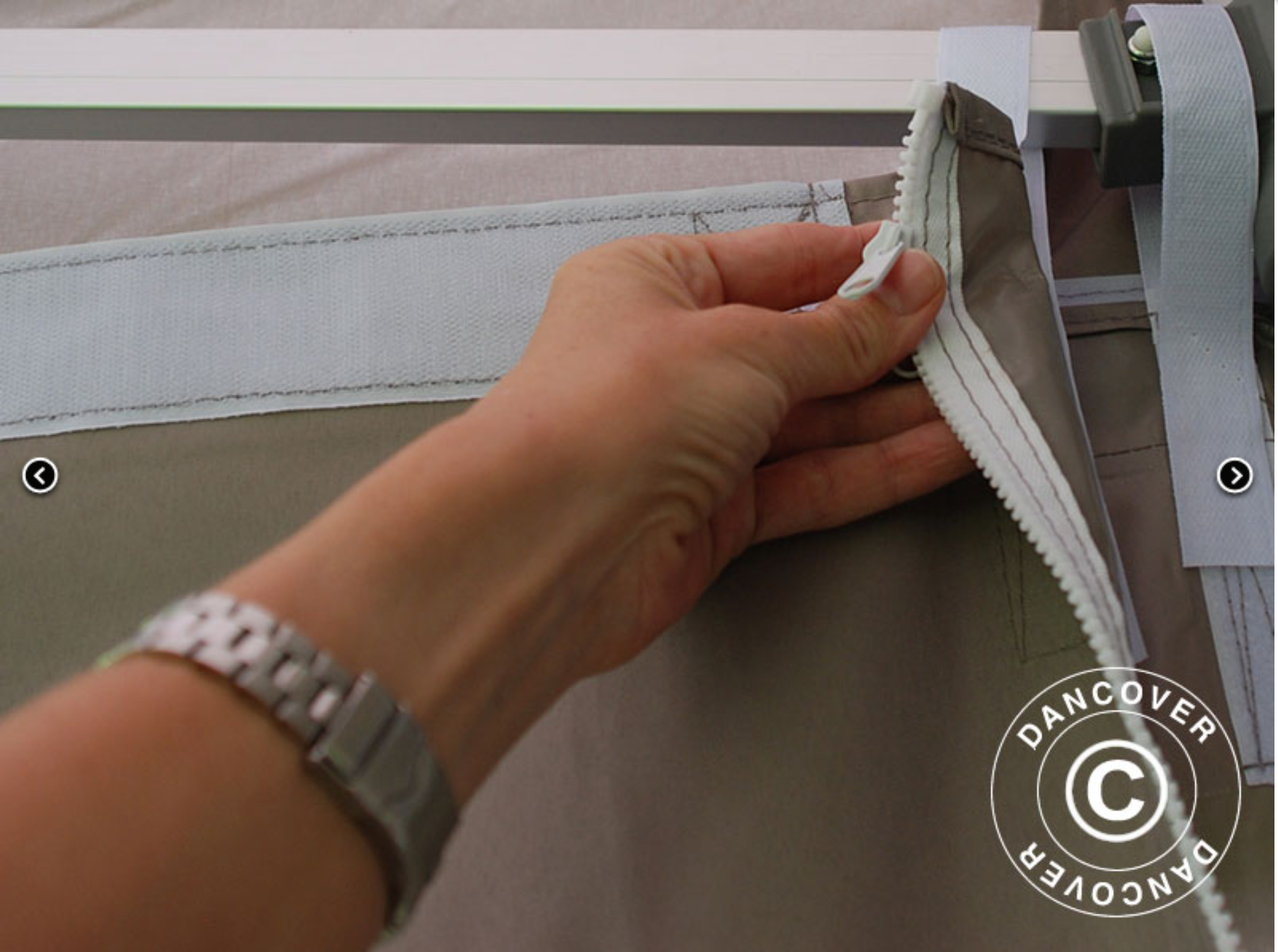 Den starka stålställningen är tillverkad av tunga sexkantiga rör för maximal styrka och hållbarhet. De stora fotplattorna ger stabil och solid förankring vid installation. FleXtents höjd är justerbar med 3 olika positioner, så det passar exakt efter dina behov. Skyddet är tillverkat av stark polyester av hög kvalitet med en kraftig PVC-baksida. Det är vattentätt, UV-resistent, smutsavvisande och tvättbart! Sidoväggarna sitter fast i varandra med dragkedja och är fixerade vid ramen med starka kardborrband.