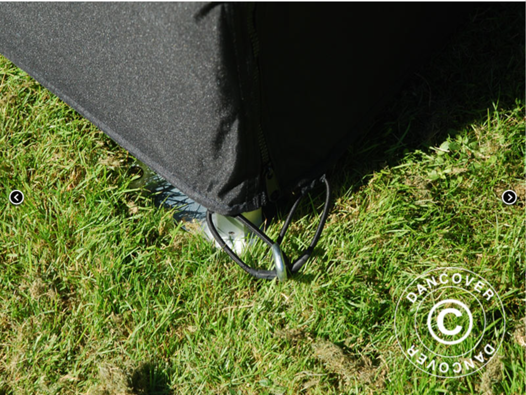 Den starka stålställningen är tillverkad av tunga sexkantiga rör för maximal styrka och hållbarhet. De stora fotplattorna ger stabil och solid förankring vid installation. FleXtents höjd är justerbar med 3 olika positioner, så det passar exakt efter dina behov. Skyddet är tillverkat av stark polyester av hög kvalitet med en kraftig PVC-baksida. Det är vattentätt, UV-resistent, smutsavvisande och tvättbart! Sidoväggarna sitter fast i varandra med dragkedja och är fixerade vid ramen med starka kardborrband.