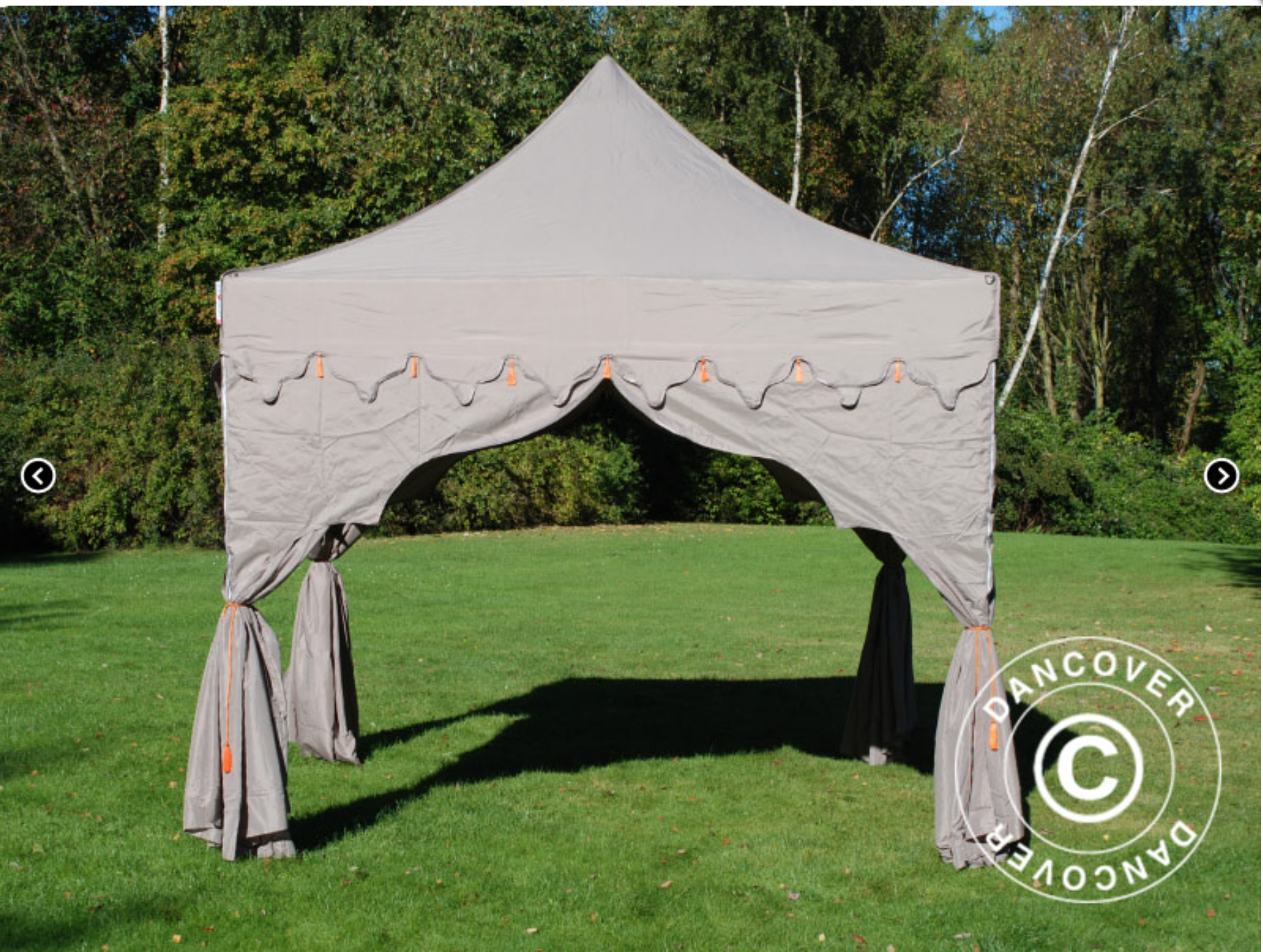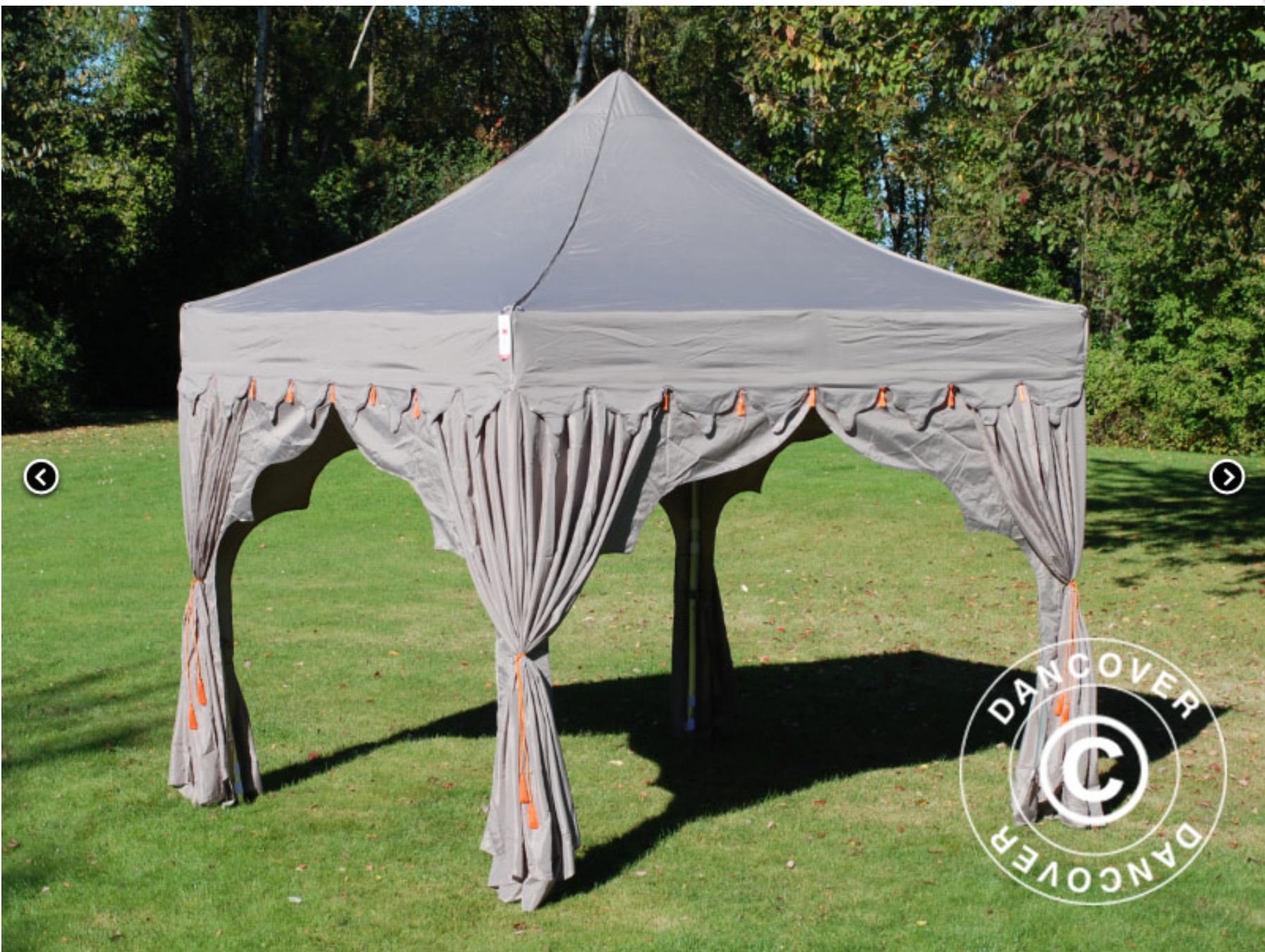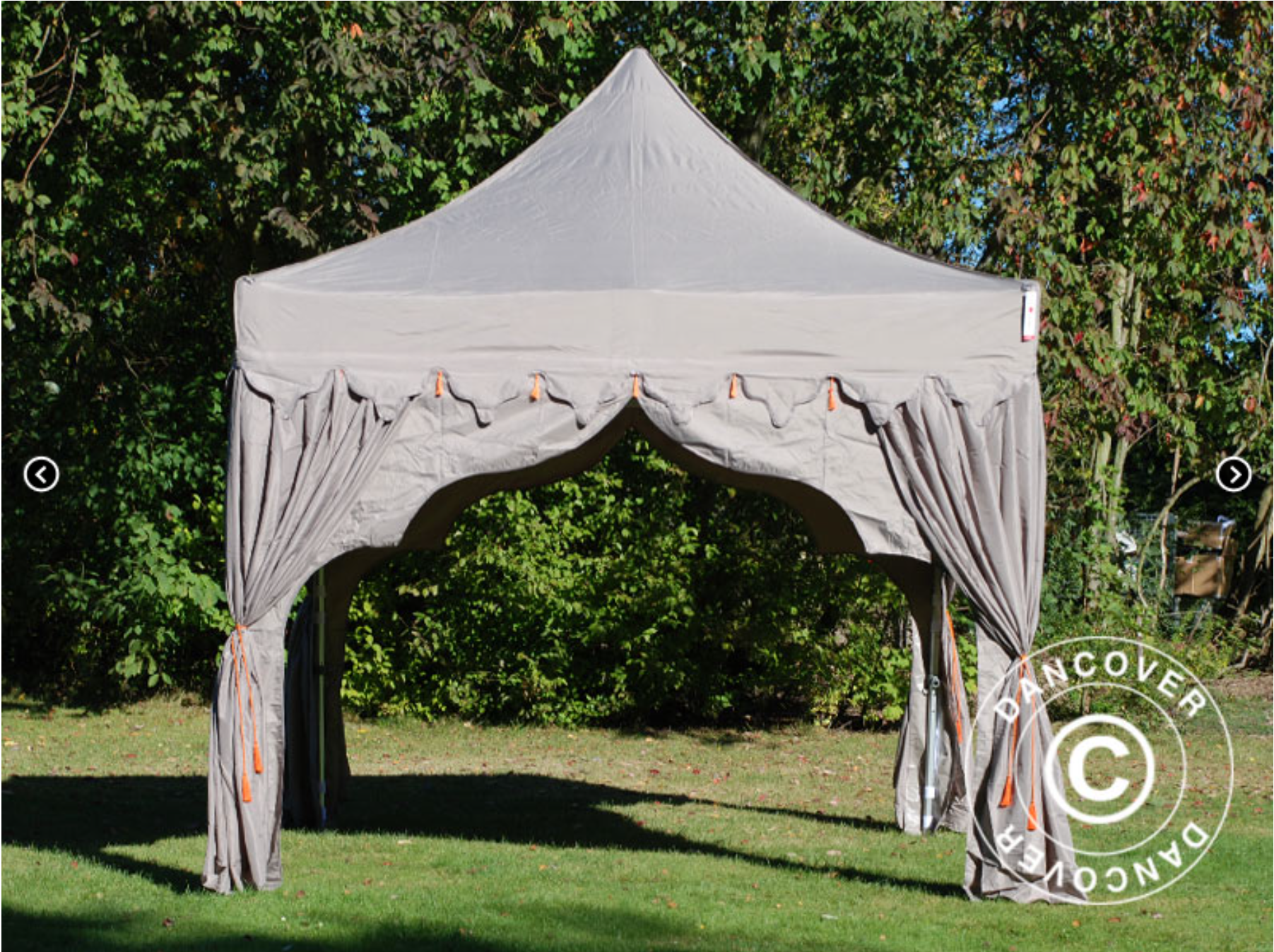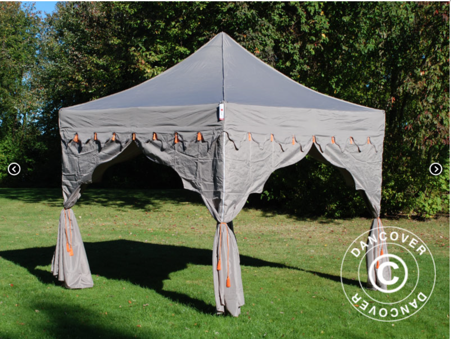 Ställning, 1 taköverdrag, 4 Dekorativa sidoväggar och gardiner, Jordspikar 25cm