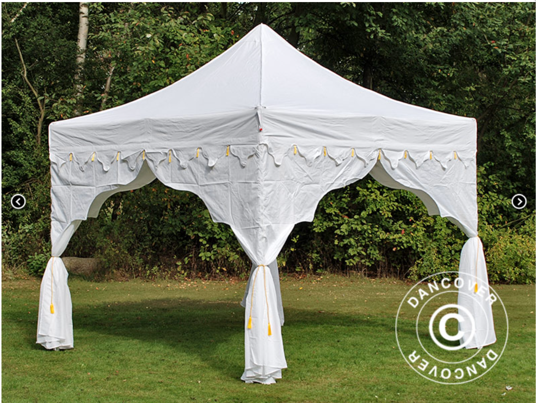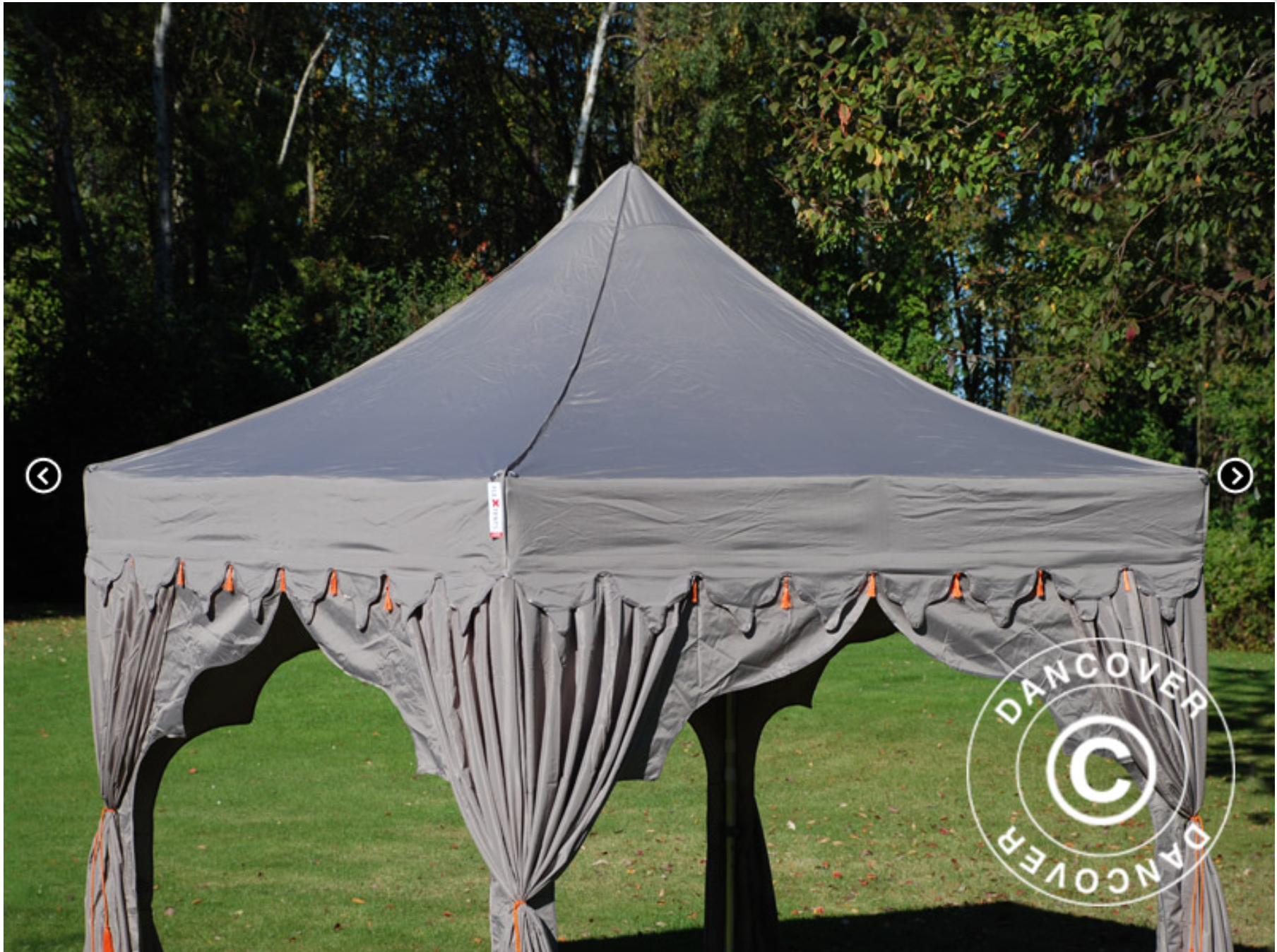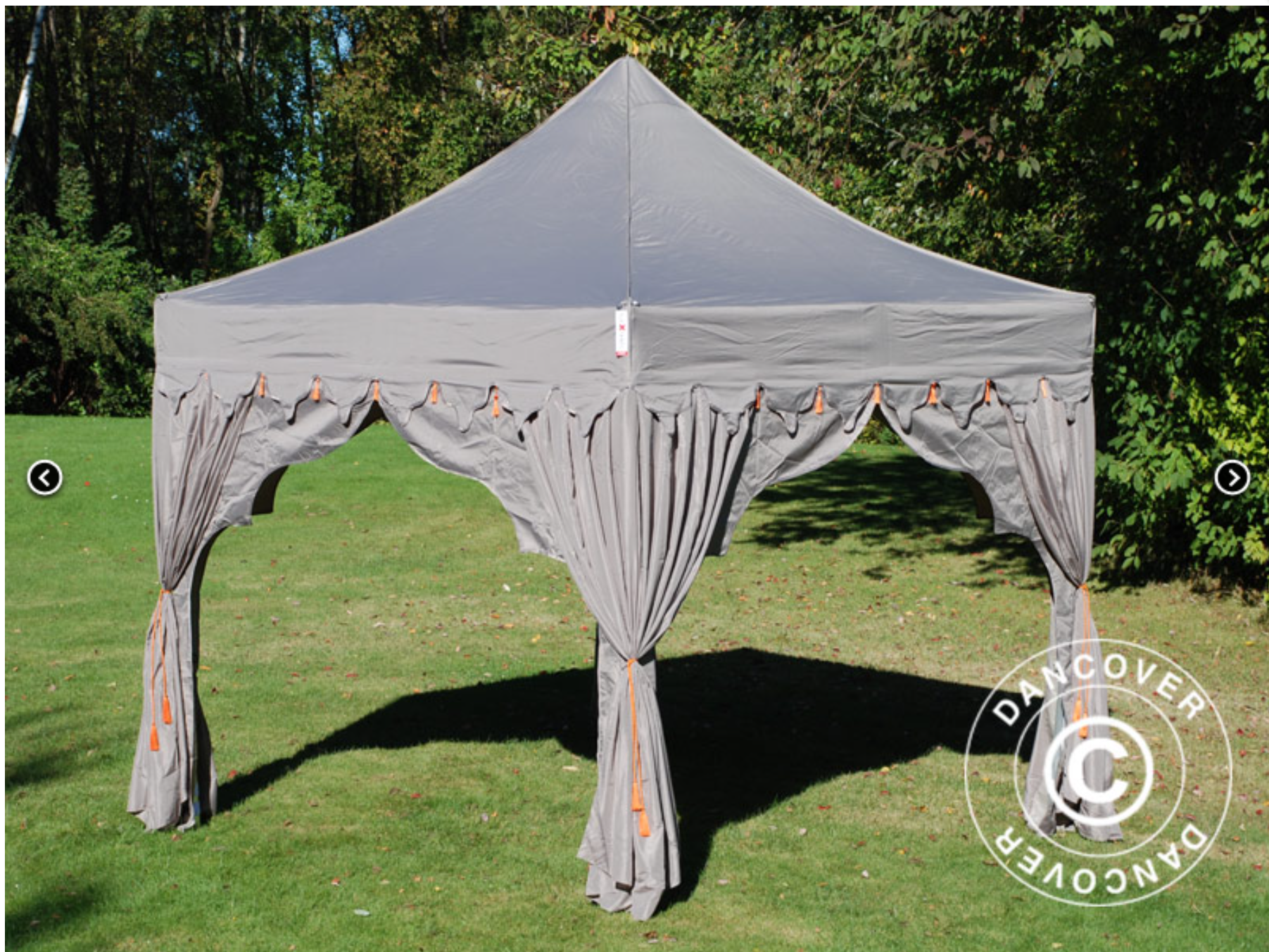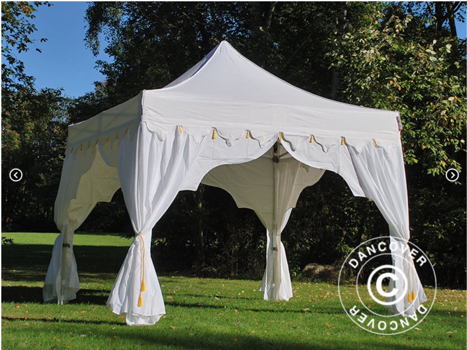 FleXtents PRO Steel ‘Raj ’ är ett vackert lusthus i en unik och romantisk Österländsk stil med ett antal detaljer som gör lusthuset till den perfekta inramningen för många speciella tillfällen. Det exotiska lusthuset kommer vara idealt för romantiska trädgårdsfester, bröllopsmottagningar, som lusthus för buffé eller marknader och mycket mer.