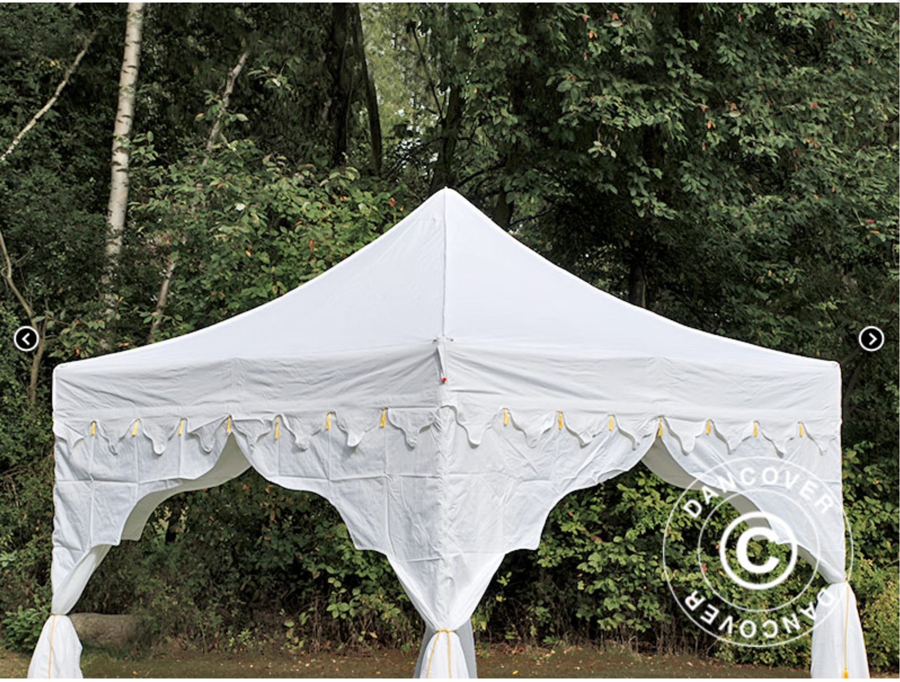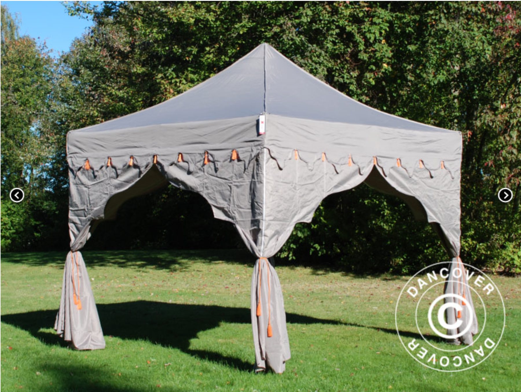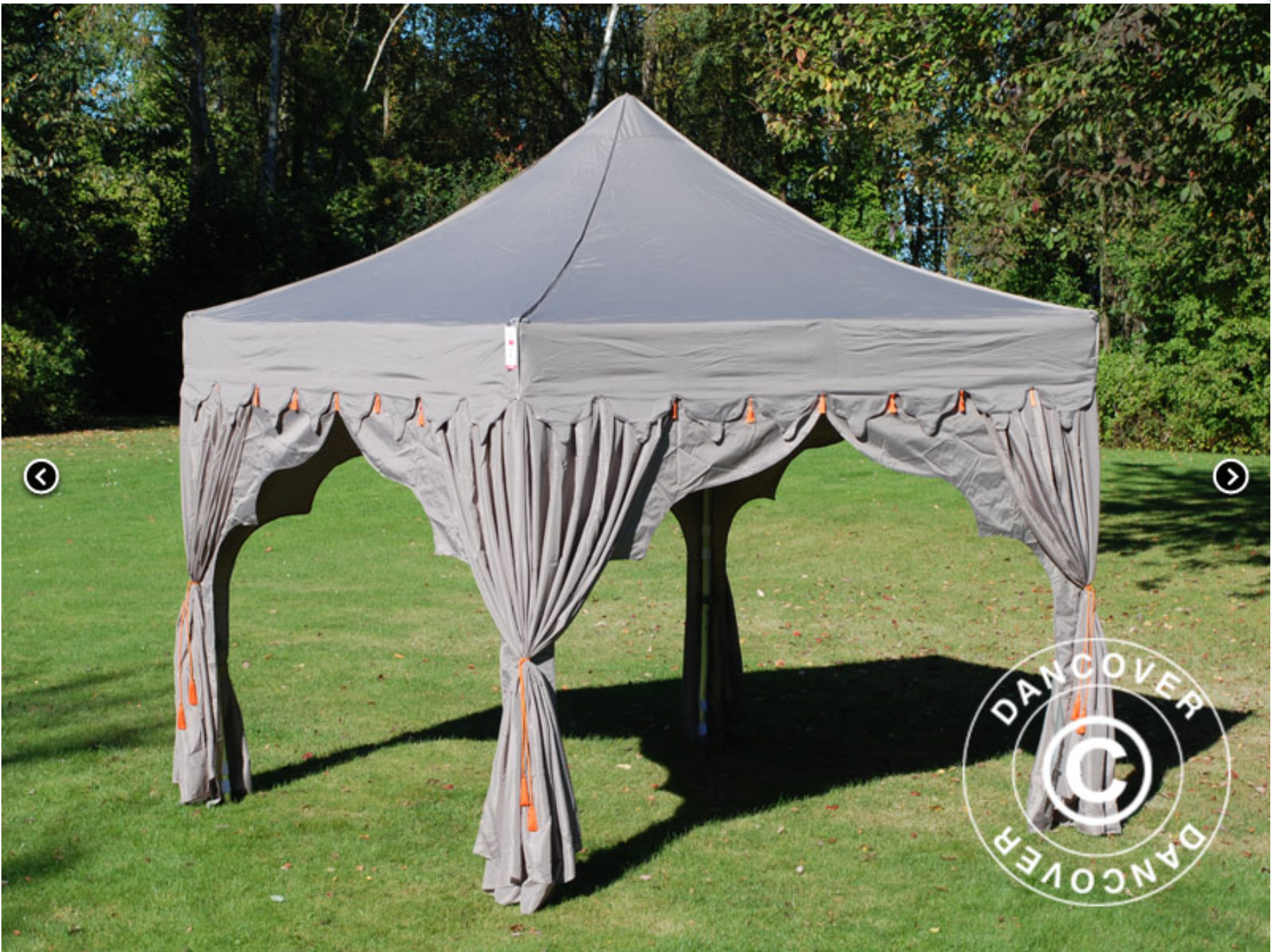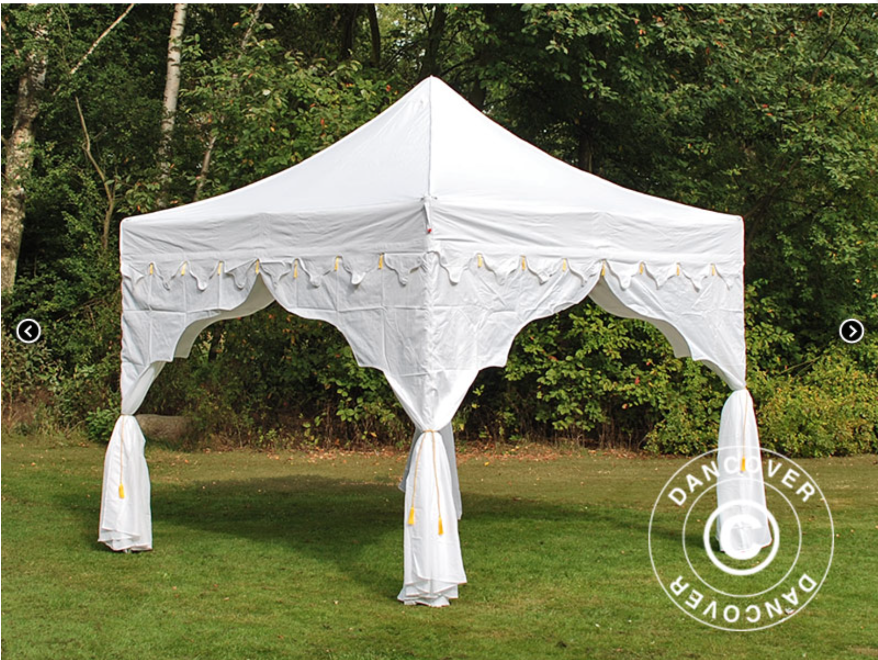 FleXtents PRO Steel ‘Raj ’ är ett vackert lusthus i en unik och romantisk Österländsk stil med ett antal detaljer som gör lusthuset till den perfekta inramningen för många speciella tillfällen. Det exotiska lusthuset kommer vara idealt för romantiska trädgårdsfester, bröllopsmottagningar, som lusthus för buffé eller marknader och mycket mer.