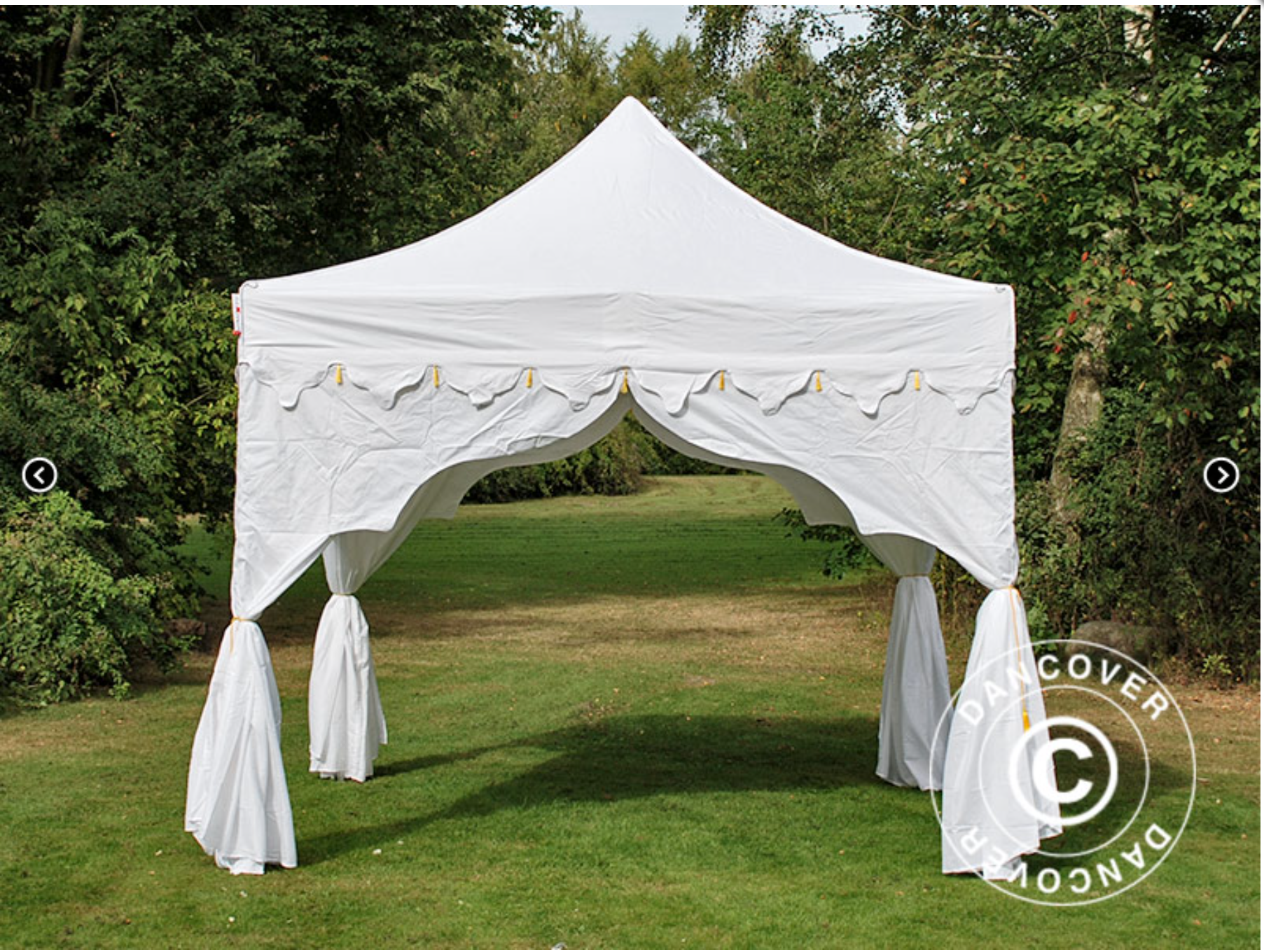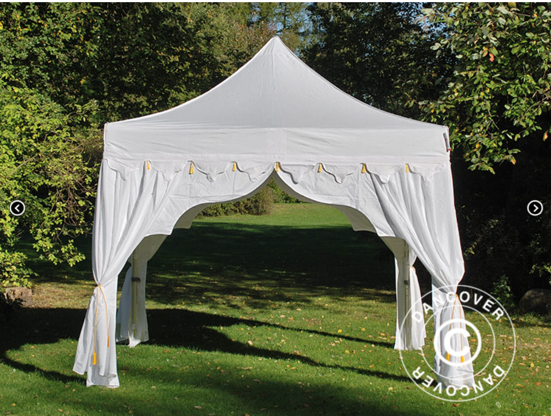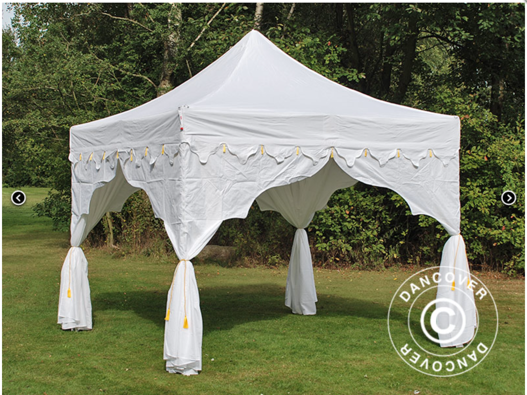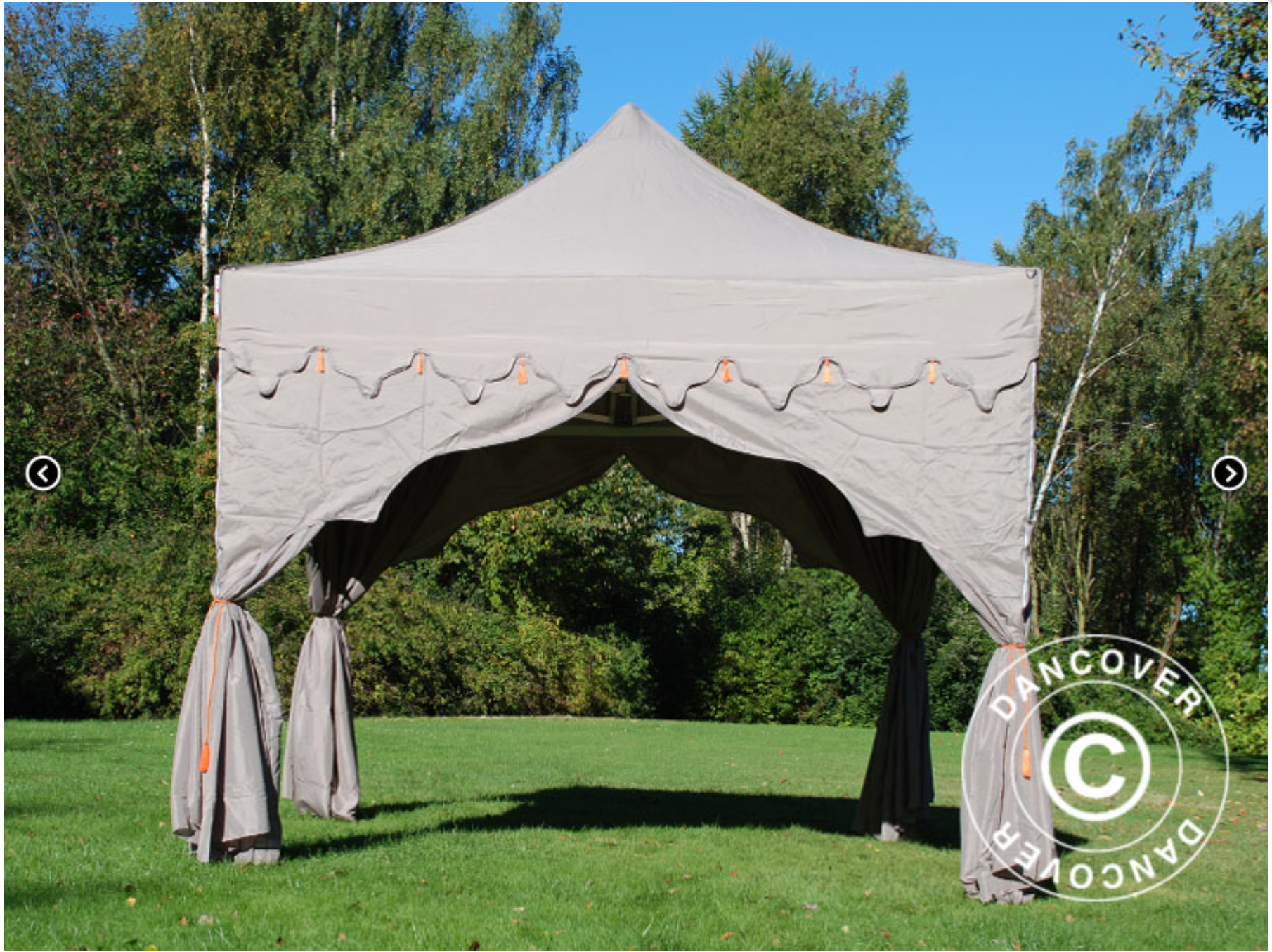 FleXtents PRO Steel ‘Raj ’ är ett vackert lusthus i en unik och romantisk Österländsk stil med ett antal detaljer som gör lusthuset till den perfekta inramningen för många speciella tillfällen. Det exotiska lusthuset kommer vara idealt för romantiska trädgårdsfester, bröllopsmottagningar, som lusthus för buffé eller marknader och mycket mer.
