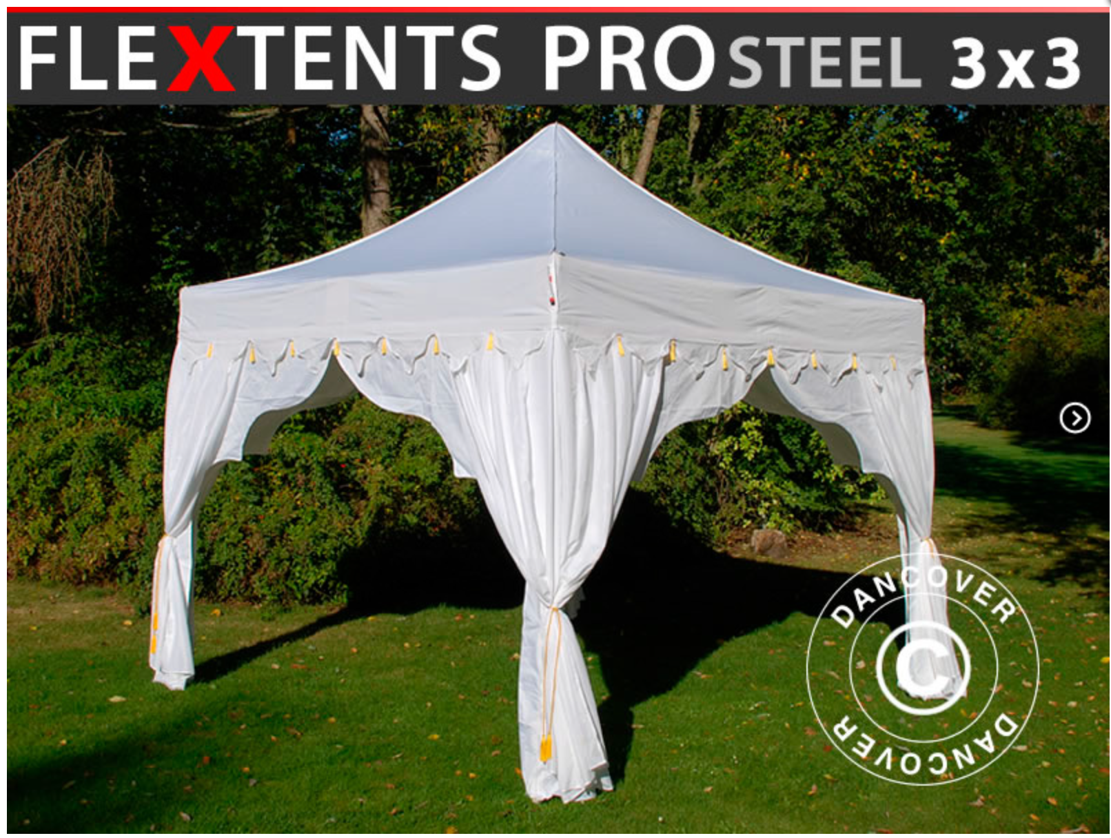 Snabbtält FleXtents PRO Steel är ett högkvalitativt snabbtält. Den kombinerar funktionell elegant design med professionell kvalitet. FleXtents PRO Steel är extremt lätt att installera, transportera och lagra.