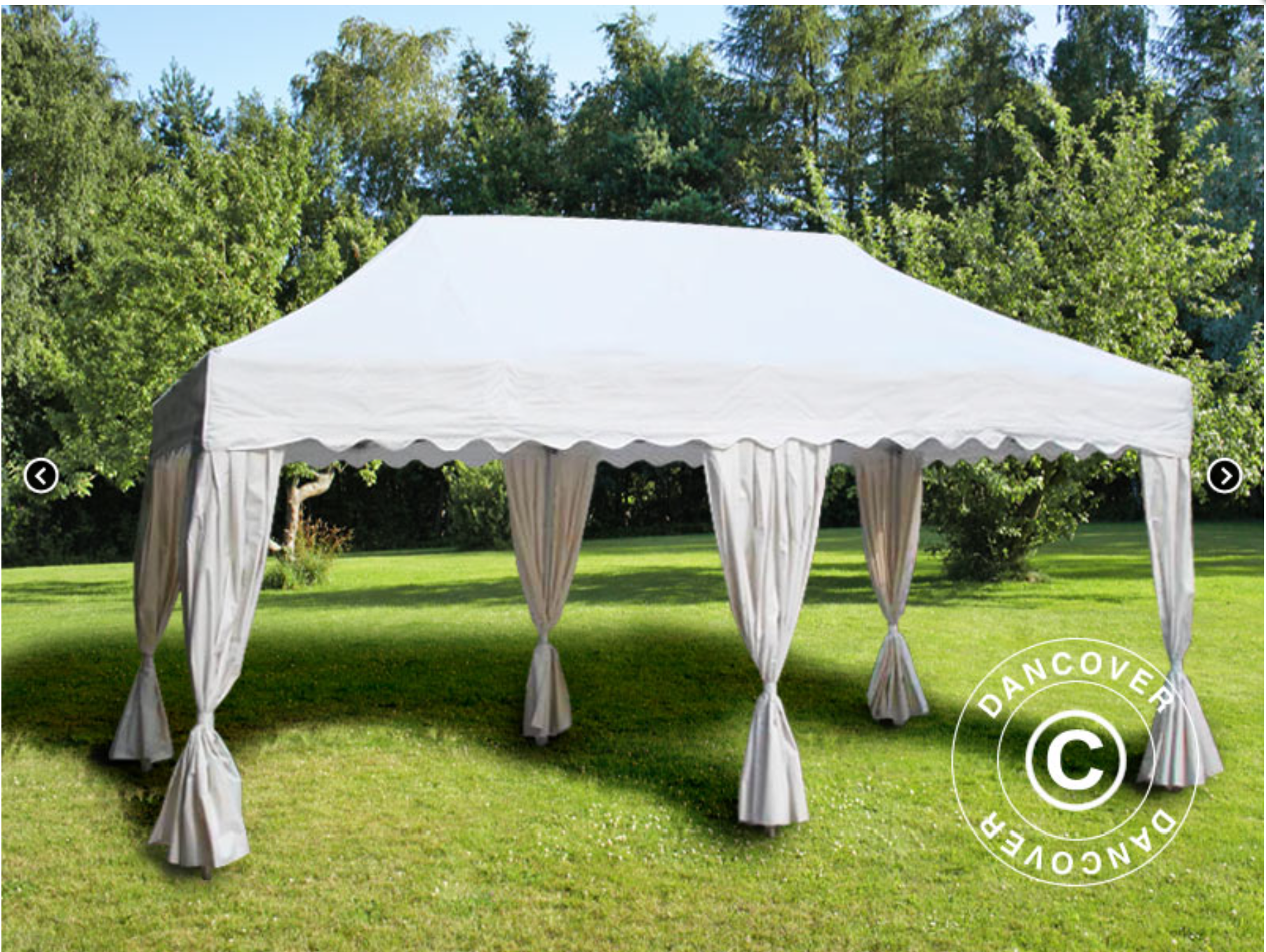 Ställning, 1 taköverdrag, 6 dekorativa gardiner, jordspikar 25 cm