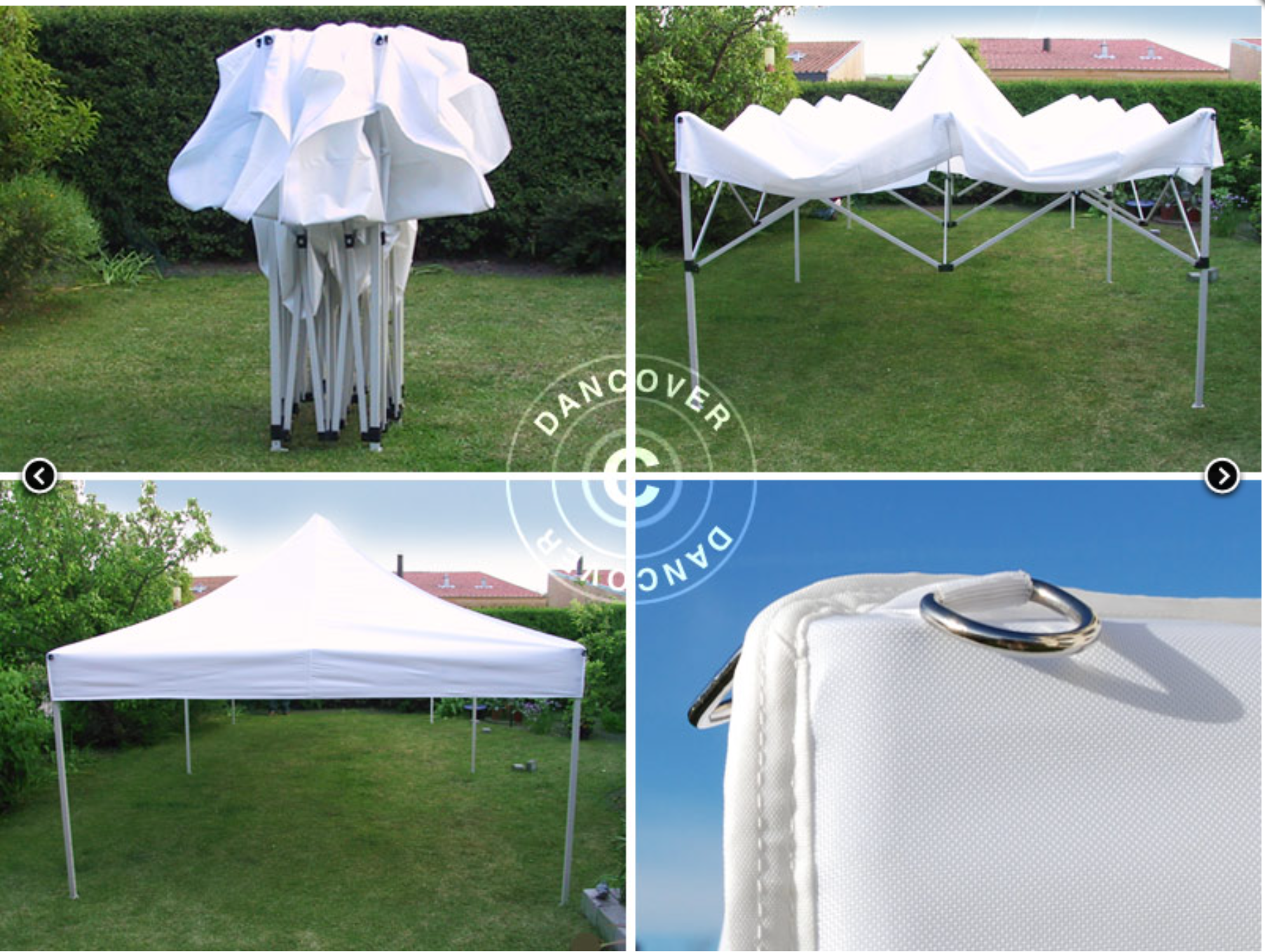 Den starka stålställningen är tillverkad av tunga sexkantiga rör för maximal styrka och hållbarhet. De stora fotplattorna ger stabil och solid förankring vid installation. FleXtents höjd är justerbar med 3 olika positioner, så det passar exakt efter dina behov. Takduken är tillverkad av högkvalitativ stark polyester med PVC-stöd. Takduken är vattentät, UV-resistent, fläckbeständig och tvättbar!