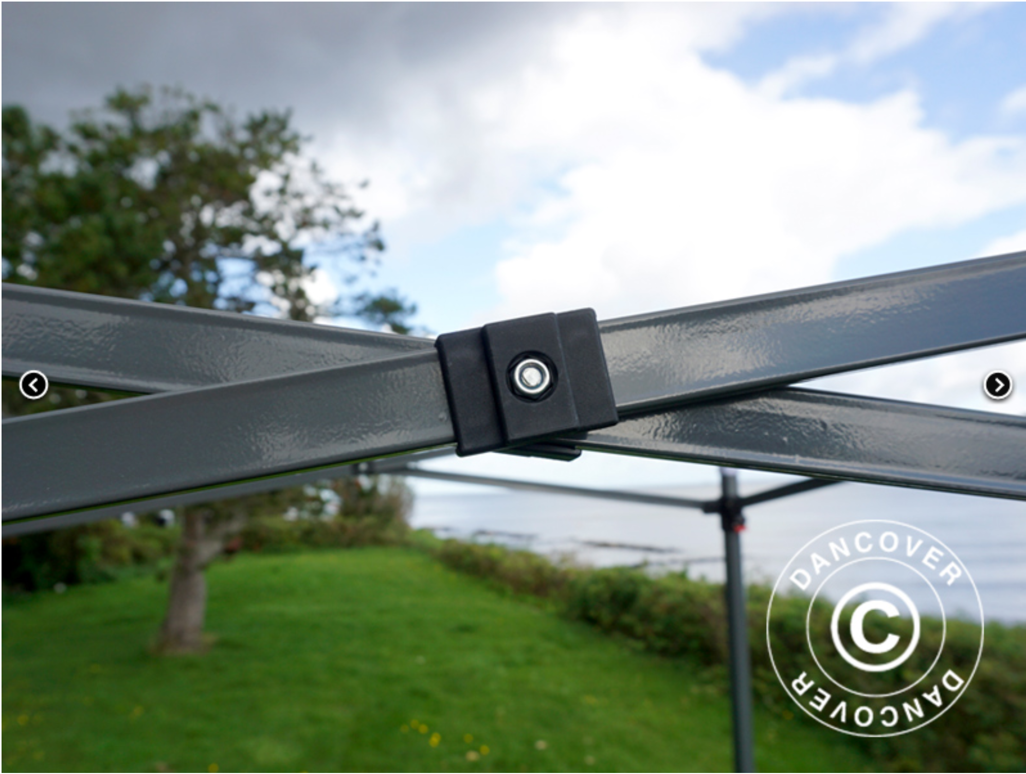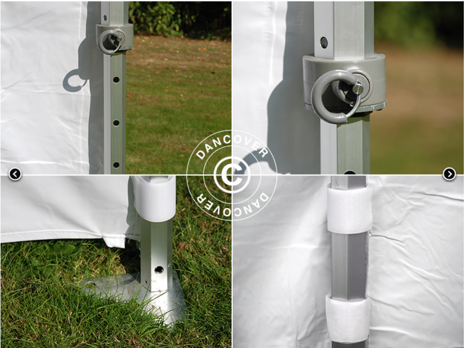 Den starka stålställningen är tillverkad av tunga sexkantiga rör för maximal styrka och hållbarhet. De stora fotplattorna ger stabil och solid förankring vid installation. FleXtents höjd är justerbar med 3 olika positioner, så det passar exakt efter dina behov. Skyddet är tillverkat av stark polyester av hög kvalitet med en kraftig PVC-baksida. Det är vattentätt, UV-resistent, smutsavvisande och tvättbart! Sidoväggarna sitter fast i varandra med dragkedja och är fixerade vid ramen med starka kardborrband.