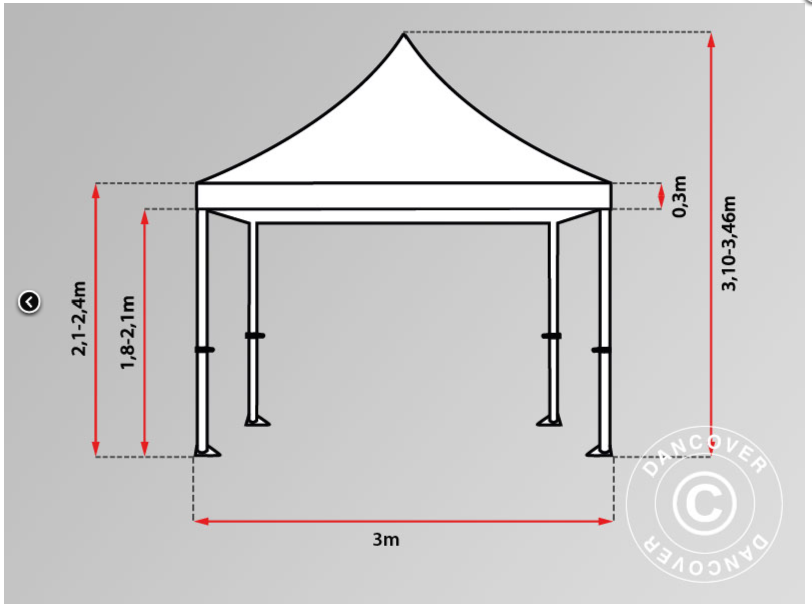 Den starka stålställningen är tillverkad av tunga sexkantiga rör för maximal styrka och hållbarhet. De stora fotplattorna ger stabil och solid förankring vid installation. FleXtents höjd är justerbar med 3 olika positioner, så det passar exakt efter dina behov. Takduken är tillverkad av högkvalitativ stark polyester med PVC-stöd. Takduken är vattentät, UV-resistent, fläckbeständig och tvättbar!
