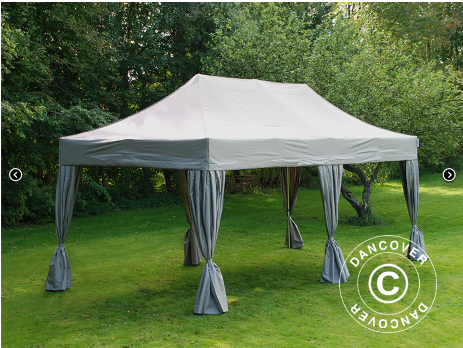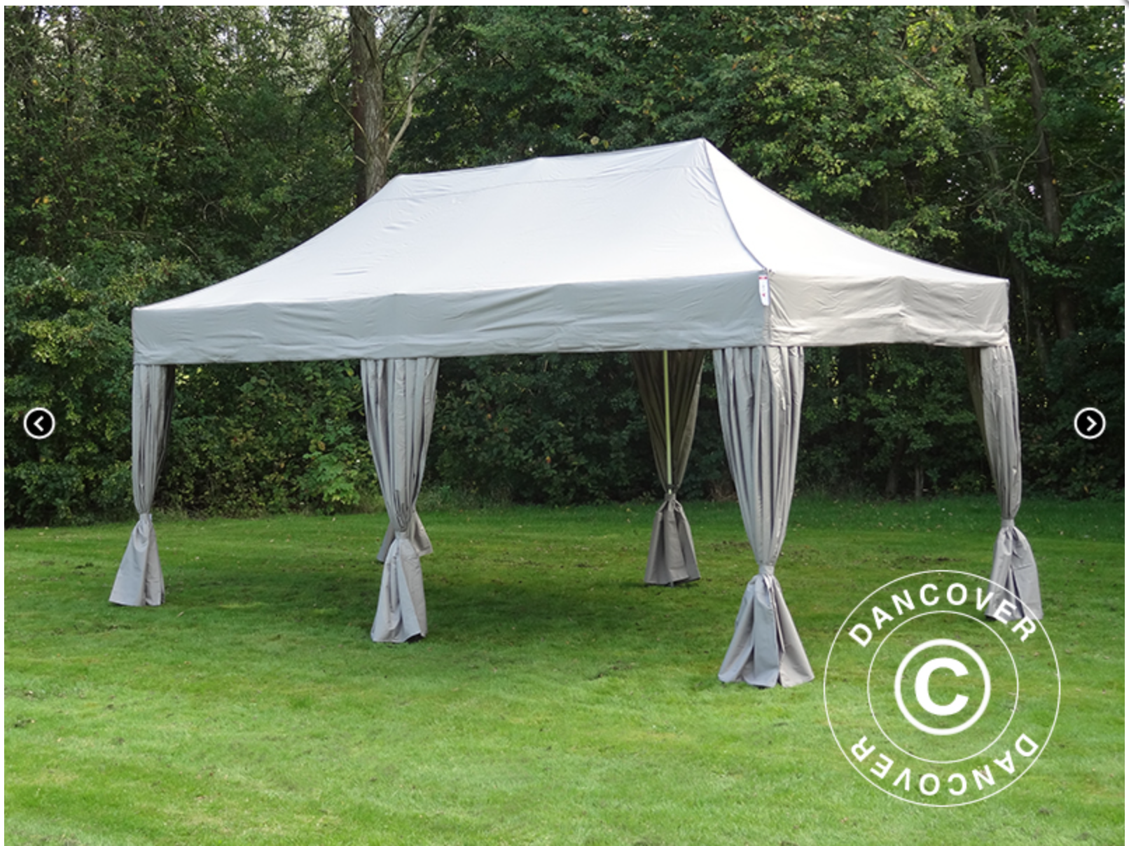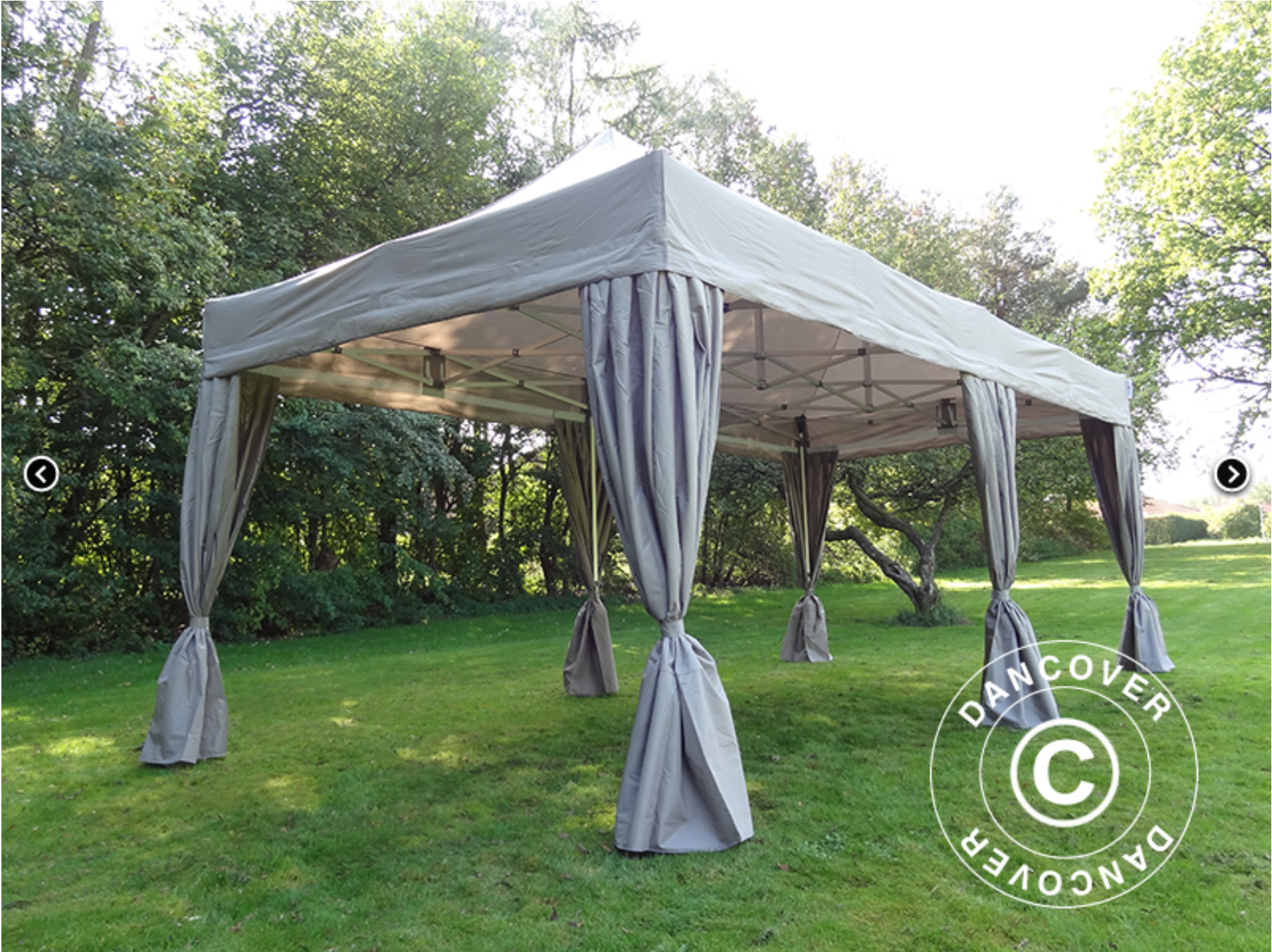 Ställning, 1 taköverdrag, 6 dekorativa gardiner, jordspikar 25 cm
