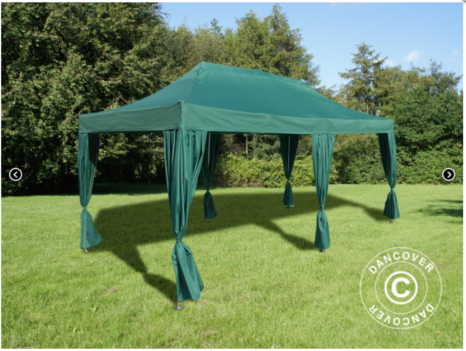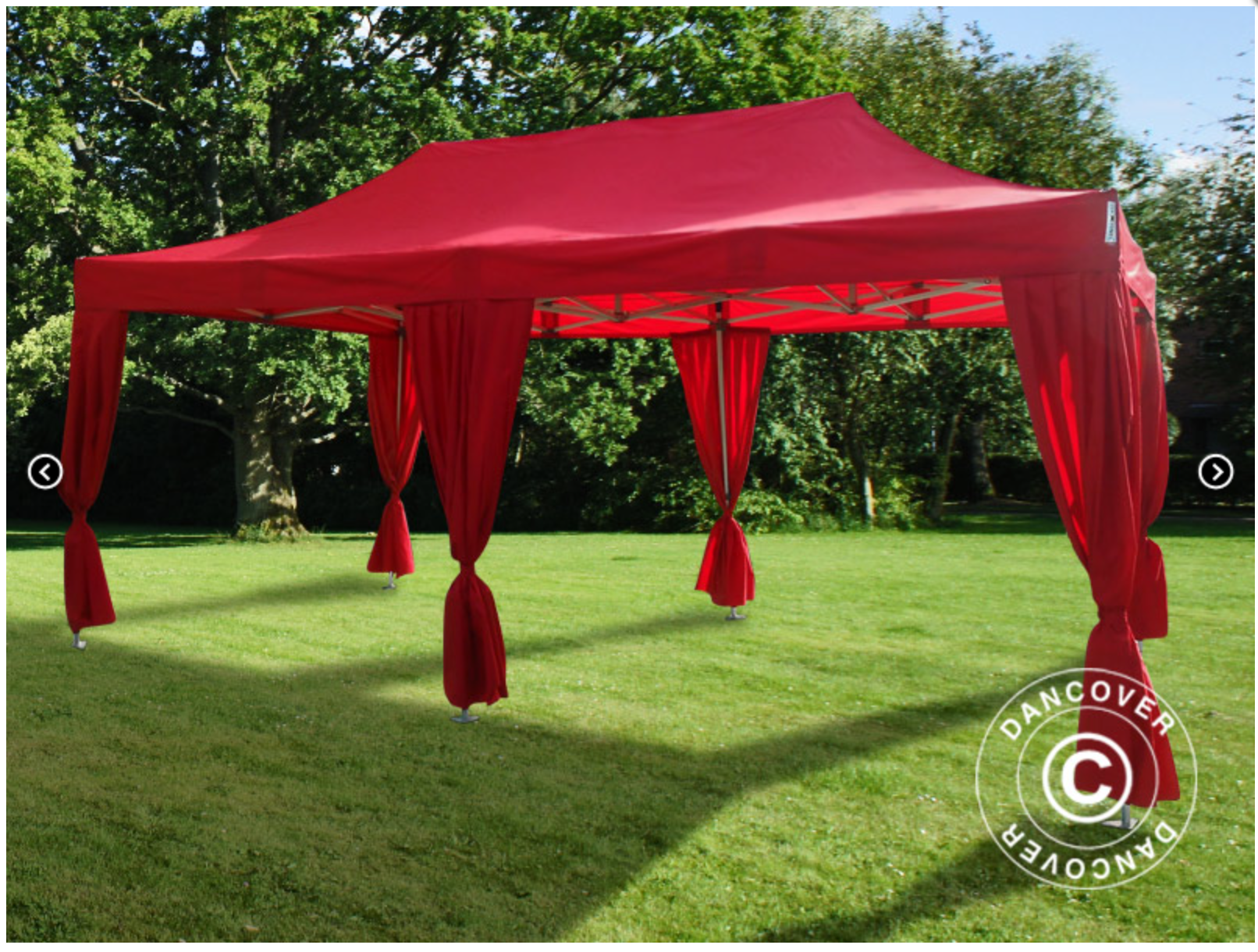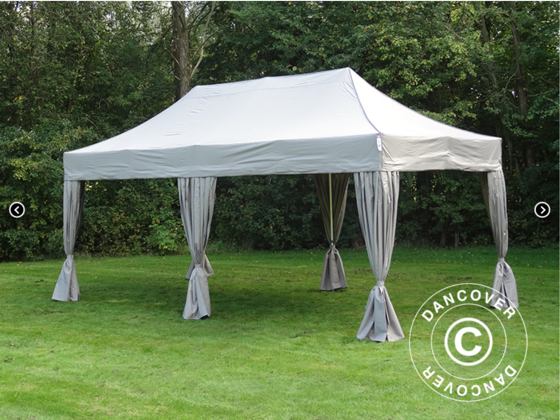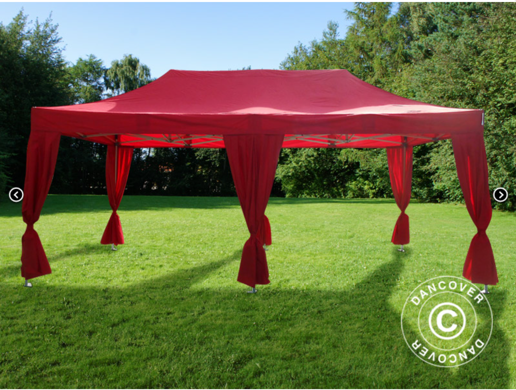 Ställning, 1 taköverdrag, 6 dekorativa gardiner, jordspikar 25 cm