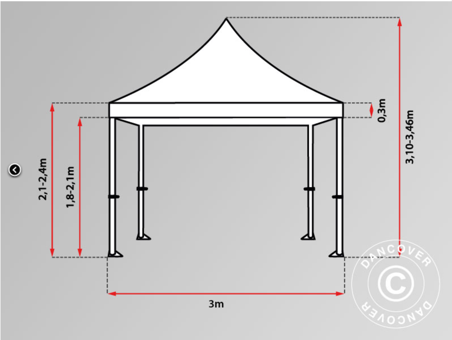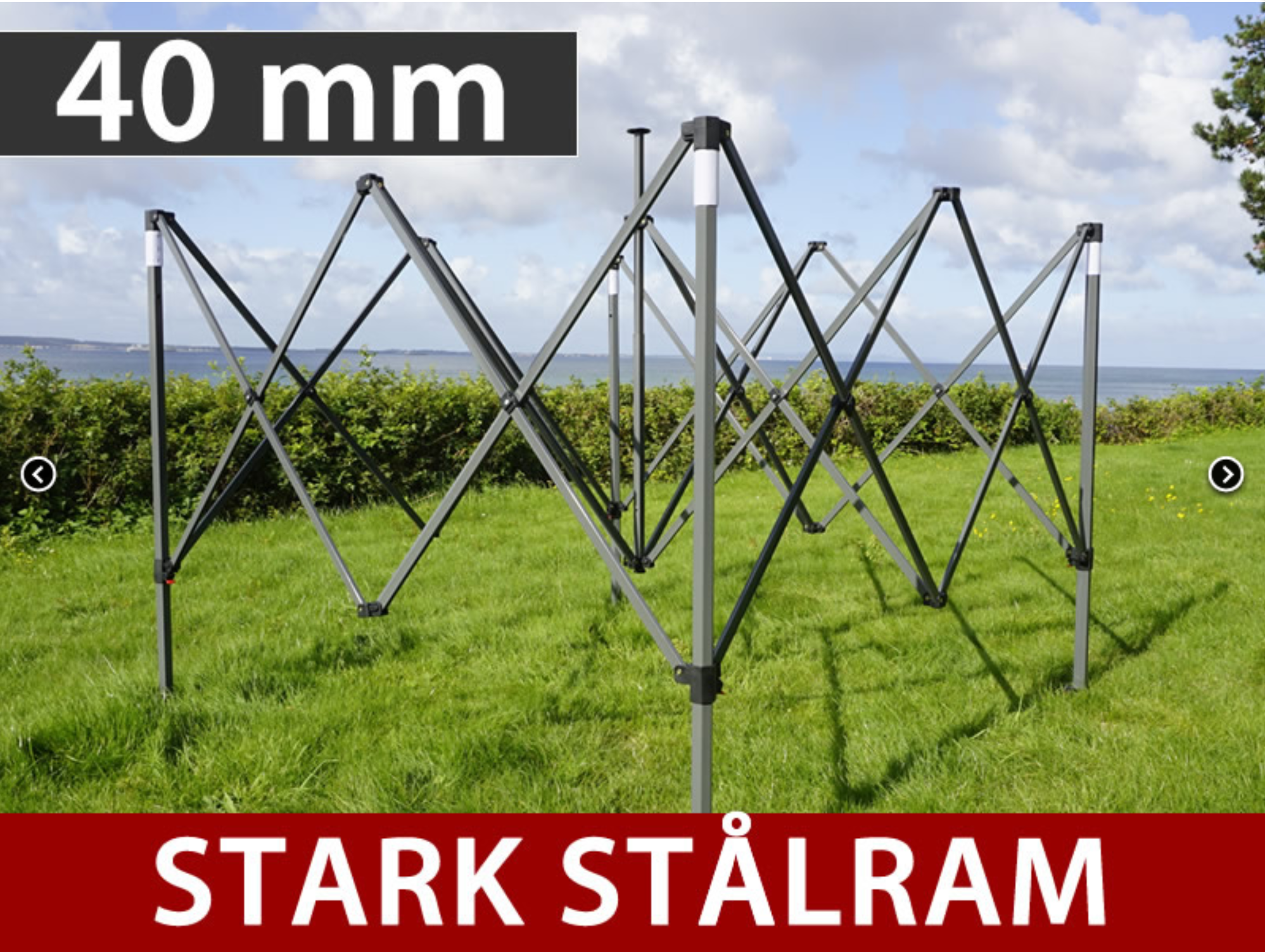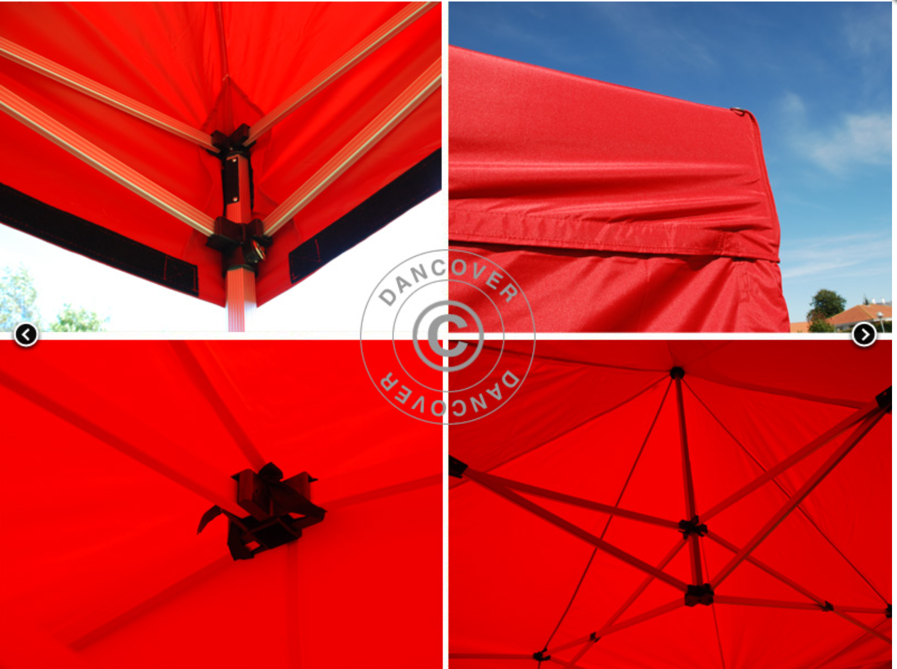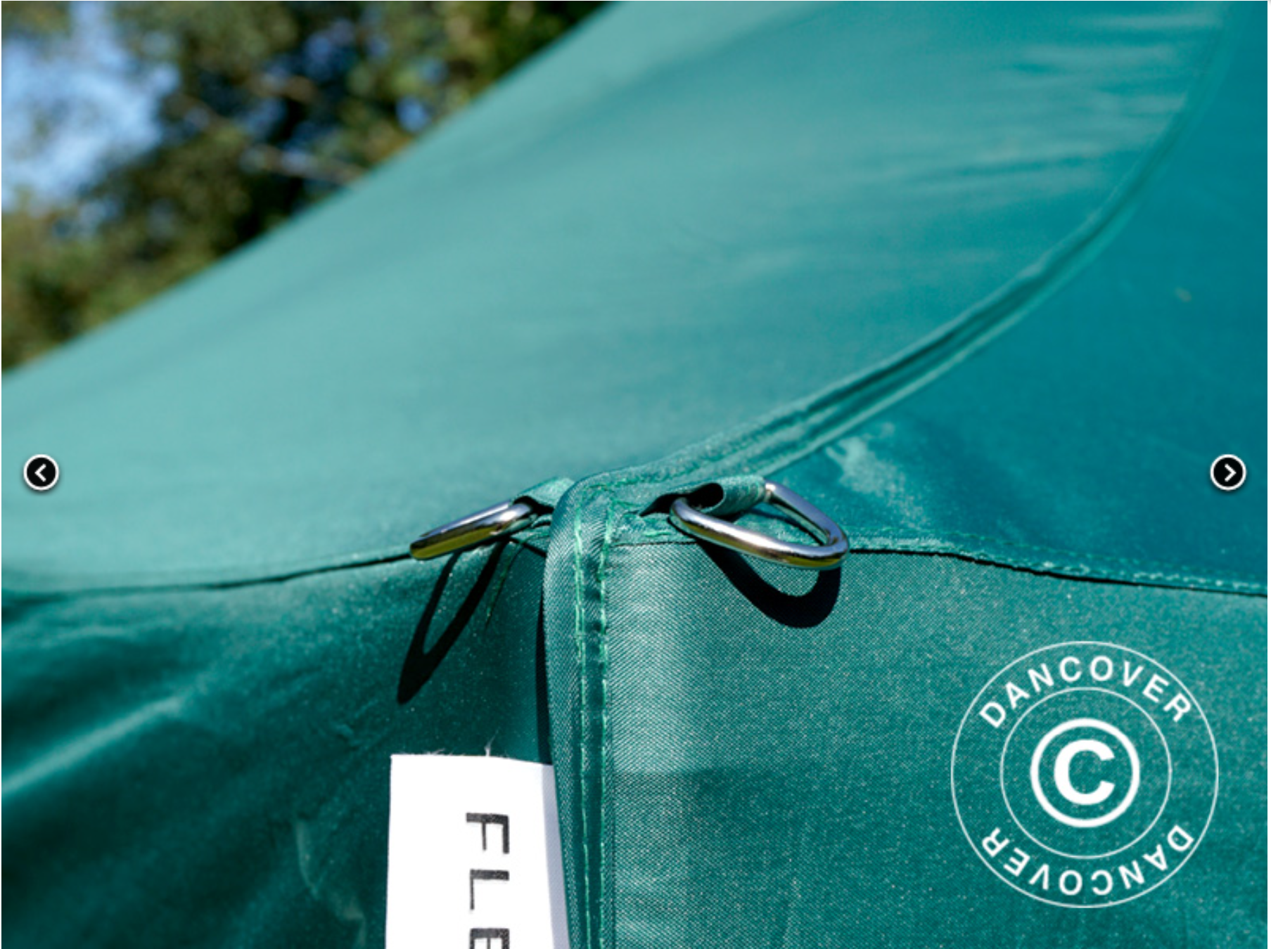 Den starka stålställningen är tillverkad av tunga sexkantiga rör för maximal styrka och hållbarhet. De stora fotplattorna ger stabil och solid förankring vid installation. FleXtents höjd är justerbar med 3 olika positioner, så det passar exakt efter dina behov. Takduken är tillverkad av högkvalitativ stark polyester med PVC-stöd. Takduken är vattentät, UV-resistent, fläckbeständig och tvättbar!