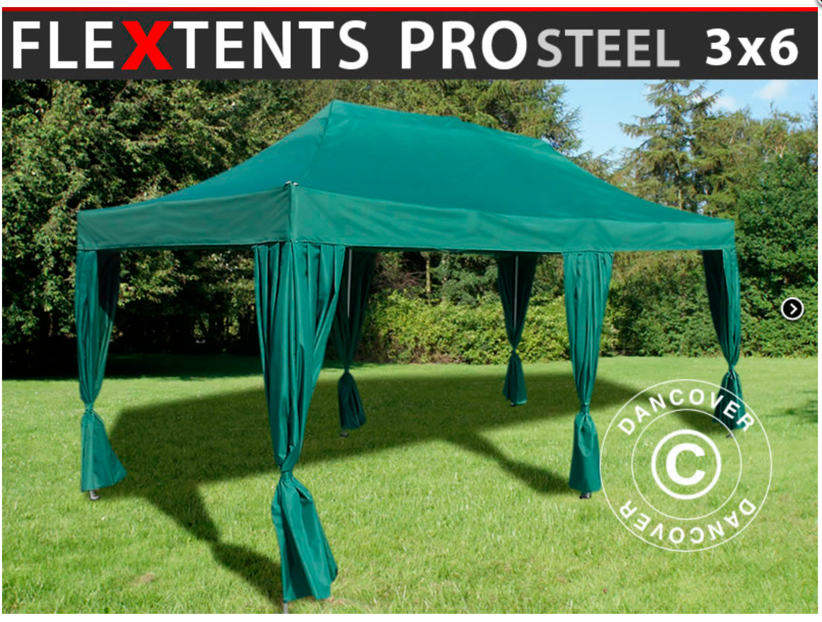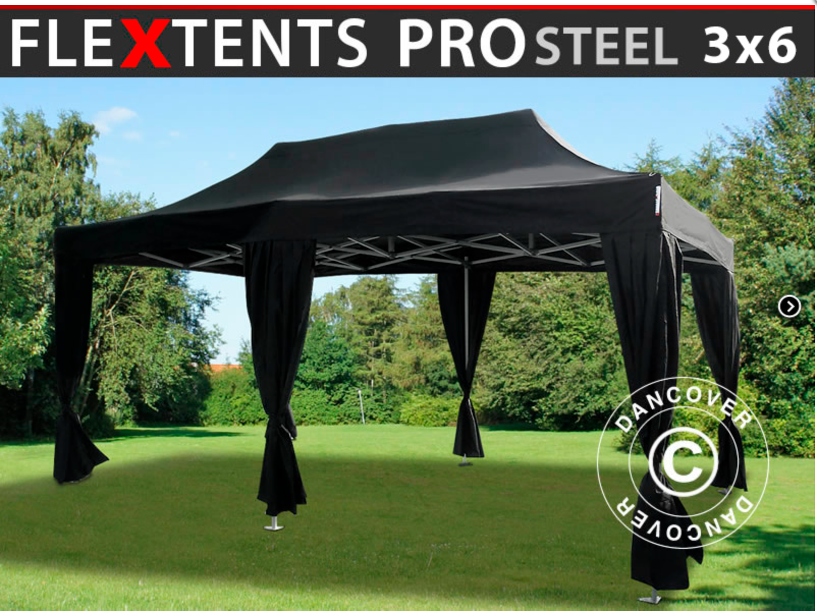Snabbtält FleXtents PRO Steel är ett högkvalitativt snabbtält. Den kombinerar funktionell elegant design med professionell kvalitet. FleXtents PRO Steel är extremt lätt att installera, transportera och lagra.