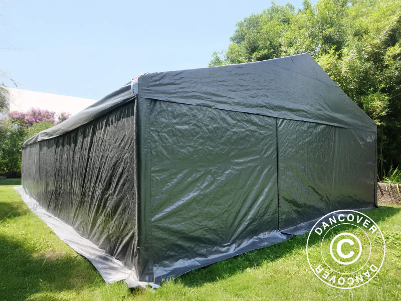Ett förvaringstält Basic är en praktisk och flexibel lösning när du snabbt behöver extra täckt utrymme. Det fungerar perfekt som tillfälligt garage för bilen, som säker förvaring för båtar, maskiner och material eller som skyddad plats för cyklar, trädgårdsmöbler, ved och mycket mer. Oavsett om det gäller privat eller professionellt bruk ger detta förvaringstält dig omedelbart extra utrymme utan behov av permanenta byggnader. Möjligheterna är nästan oändliga, vilket gör det till en mycket kostnadseffektiv och anpassningsbar lösning. Observera att vi rekommenderar våra PVC-förvaringstält om du behöver långvarig förvaring.