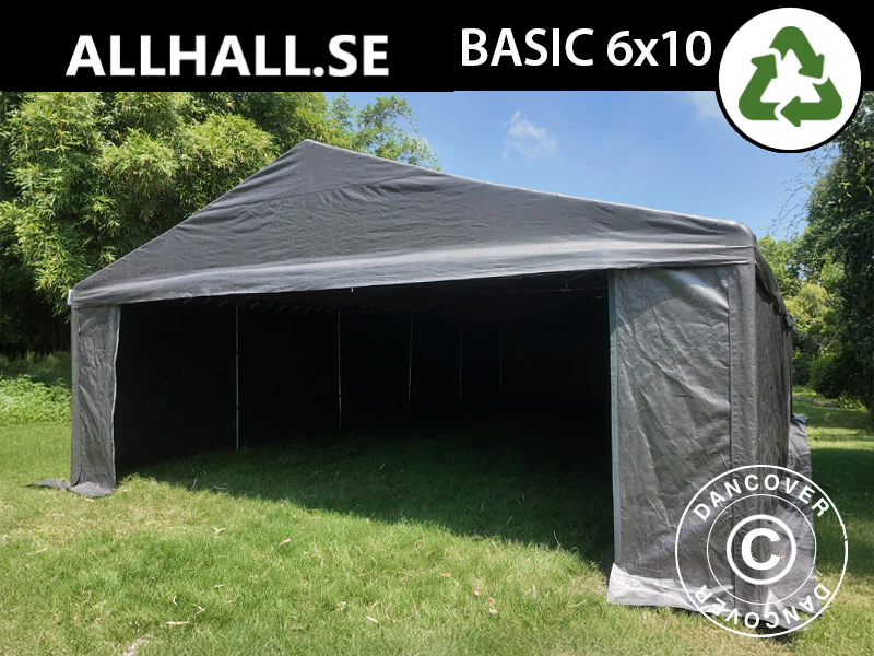 Ett förvaringstält Basic är en praktisk och flexibel lösning när du snabbt behöver extra täckt utrymme. Det fungerar perfekt som tillfälligt garage för bilen, som säker förvaring för båtar, maskiner och material eller som skyddad plats för cyklar, trädgårdsmöbler, ved och mycket mer. Oavsett om det gäller privat eller professionellt bruk ger detta förvaringstält dig omedelbart extra utrymme utan behov av permanenta byggnader. Möjligheterna är nästan oändliga, vilket gör det till en mycket kostnadseffektiv och anpassningsbar lösning. Observera att vi rekommenderar våra PVC-förvaringstält om du behöver långvarig förvaring.