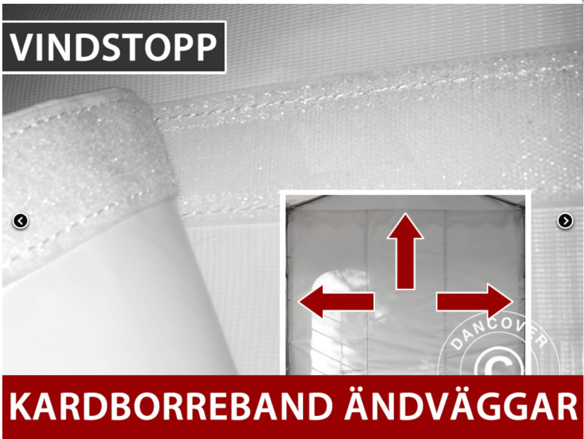 Ett förvaringstält Basic är en praktisk och flexibel lösning när du snabbt behöver extra täckt utrymme. Det fungerar perfekt som tillfälligt garage för bilen, som säker förvaring för båtar, maskiner och material eller som skyddad plats för cyklar, trädgårdsmöbler, ved och mycket mer. Oavsett om det gäller privat eller professionellt bruk ger detta förvaringstält dig omedelbart extra utrymme utan behov av permanenta byggnader. Möjligheterna är nästan oändliga, vilket gör det till en mycket kostnadseffektiv och anpassningsbar lösning. Observera att vi rekommenderar våra PVC-förvaringstält om du behöver långvarig förvaring.