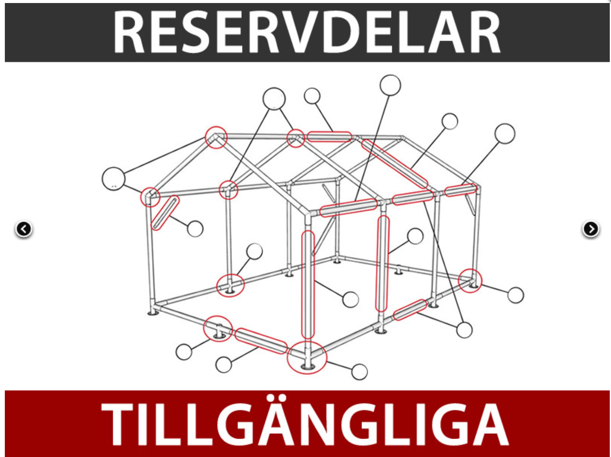 Alla förvaringstält och partytält består av flera olika delar, och till och med för det mest robusta förvaringstälten eller partytälten så inträffar olyckor – eller så går delar förlorade. Det är därför vi erbjuder reservdelar till ditt Basic förvaringstält. Om du någon gång behöver en reservdel för ditt Basic förvaringstält, besök vår butik för att hitta den relevanta produkten och leta upp de saknade delarna. Du beställer sedan reservdelarna, och vi levererar dem till dig om några dagar. Du kan därefter njuta av din Allhalls produkt under en ännu längre tid.