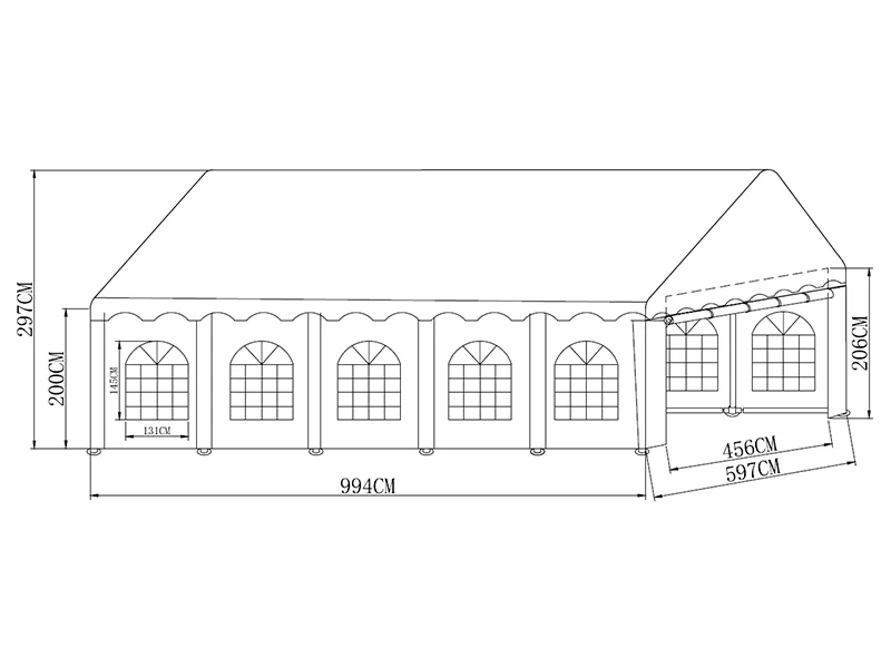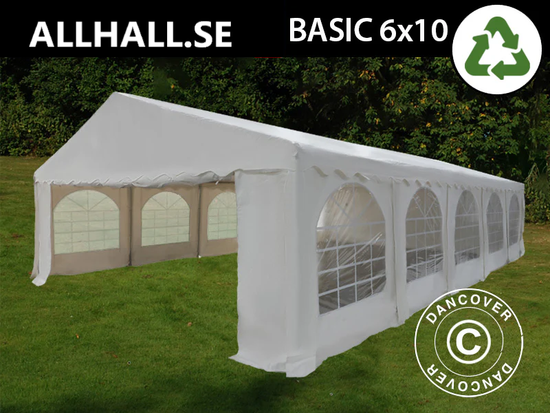 Allhall har många års erfarenhet av att utveckla partytält. Ett partytält skapar den perfekta atmosfären för viktiga tillfällen som bröllop, konfirmationer, födelsedagar, studentfiranden och andra betydelsefulla evenemang. Ett vackert och funktionellt partytält är även idealiskt för de flesta professionella evenemang, såsom mässor, produktlanseringar, teambuilding, företagsutflykter och mycket mer. PVC-partytältet Basic 700 har en stabil konstruktion. Stommen är tillverkad av galvaniserade stålrör som sammanfogas med bultar, och tältduken är av 100 % vattentät PVC. Partytältet levereras med avtagbara sidoväggar samt gavelväggar med dragkedjor som enkelt kan rullas upp för smidig åtkomst och effektiv ventilation. De stora fönstren släpper in rikligt med ljus och skapar en behaglig rymd inuti tältet.